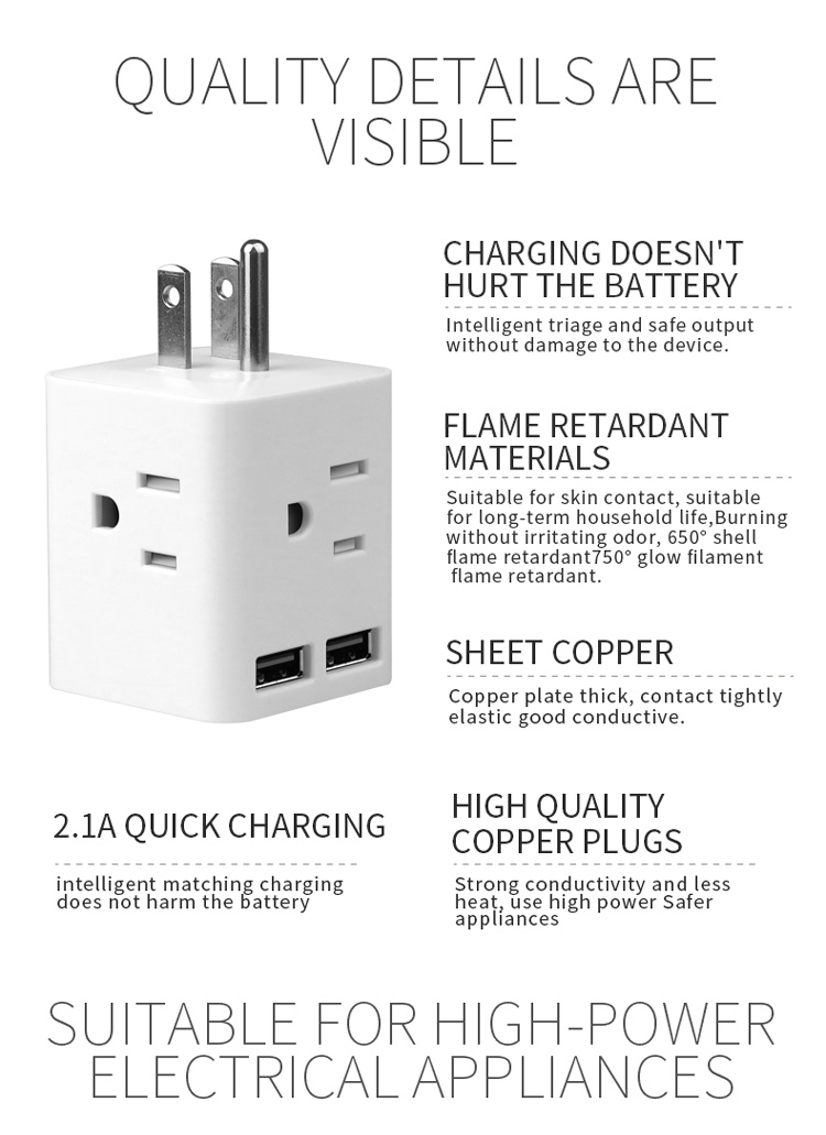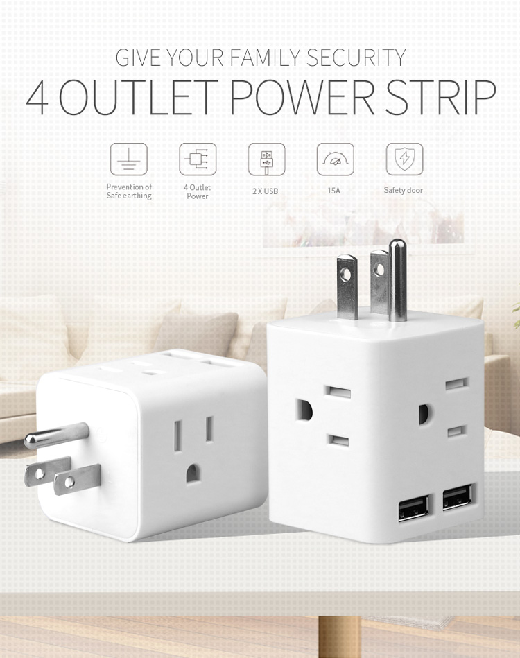 US Plug Adapter Desktop 2 USB Ports 4 Sockets Desktop USB Power Strip US 3 Pin Plug US Cube Socket Multi Travel Adapter