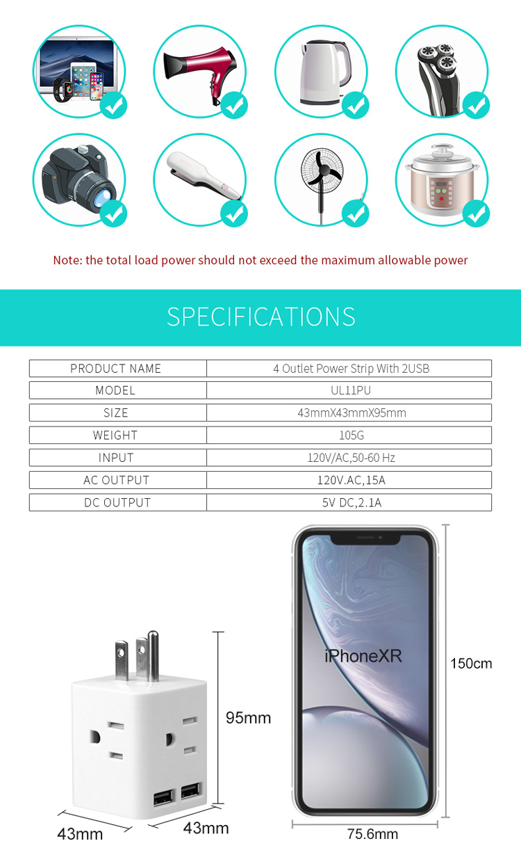 | enter: | 120V/AC, 50-60Hz | product name: | 4 Outlet Power Strip |
