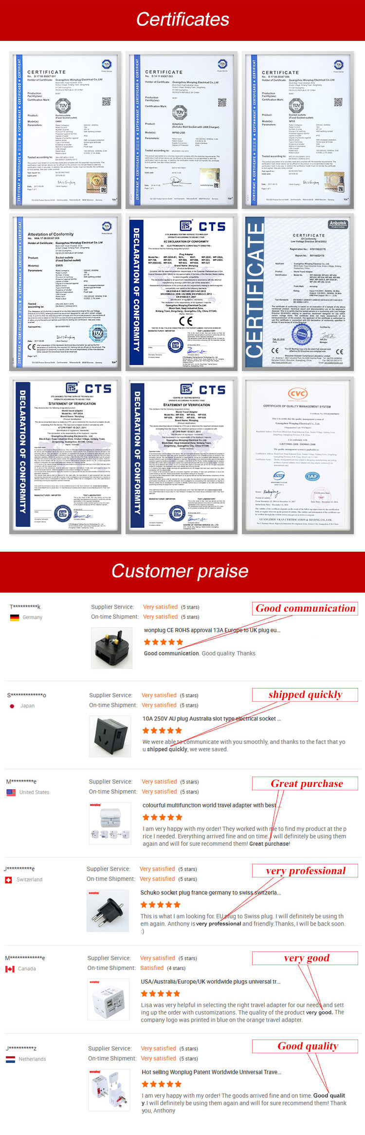 Our company is a professional manufacturer specializing in the development and production of various world travel adapters, universal plugs, audio power plugs, electronic gifts, travel gifts, business gifts and other products. With a strong R&D department and experienced engineers, our factory can provide OEM and ODM services according to your requirements, please tell us what you think! Our R&D team is always at your service. Our factory is inISO 9001:2015Quality management system control.