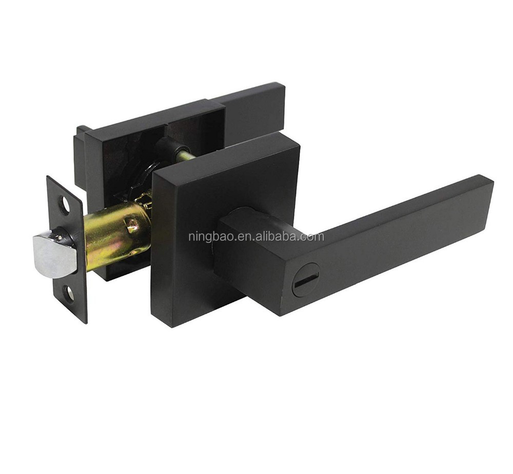 USA Matte black door handle lock square black zinc alloy lever set square door lever black US modern black door handle lock set