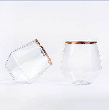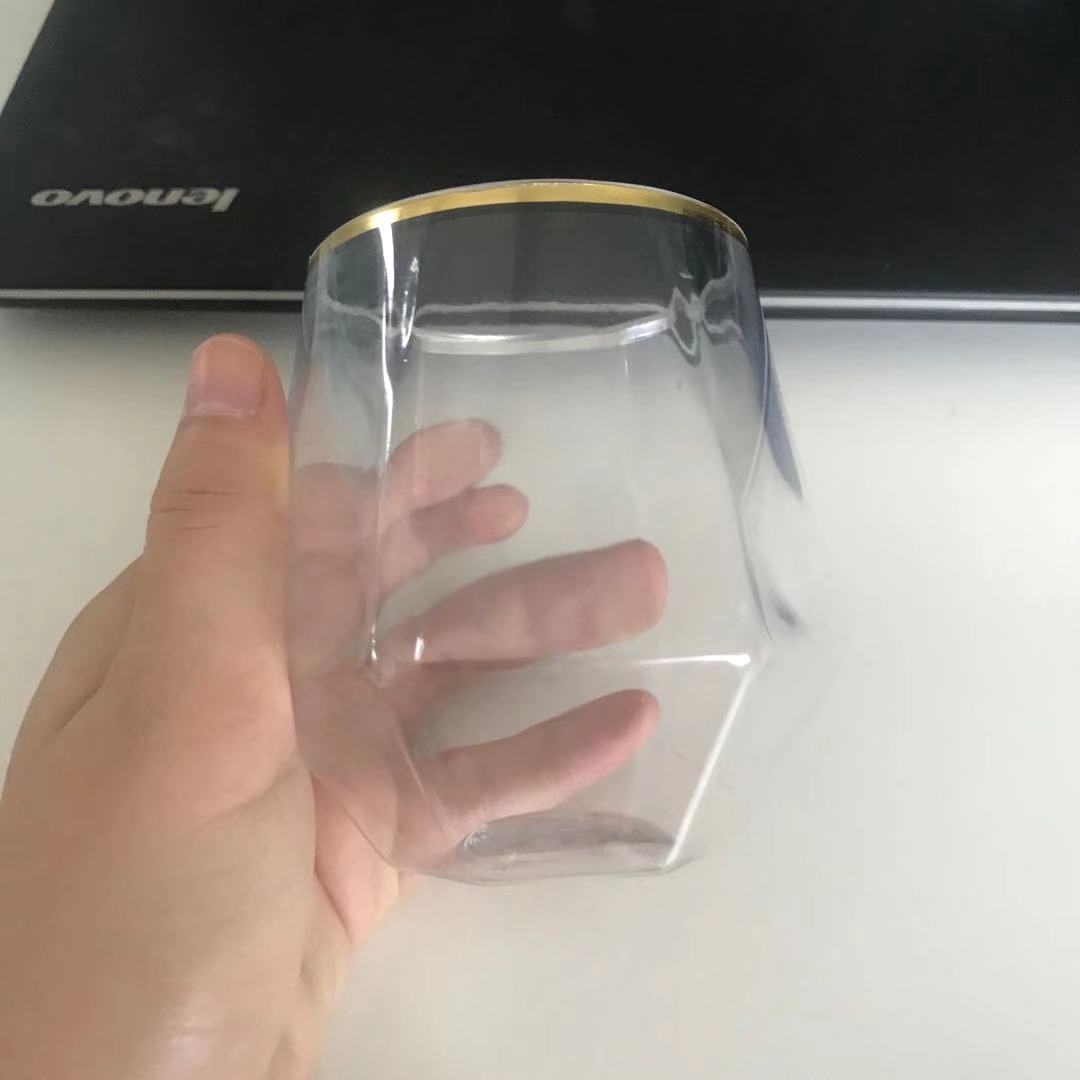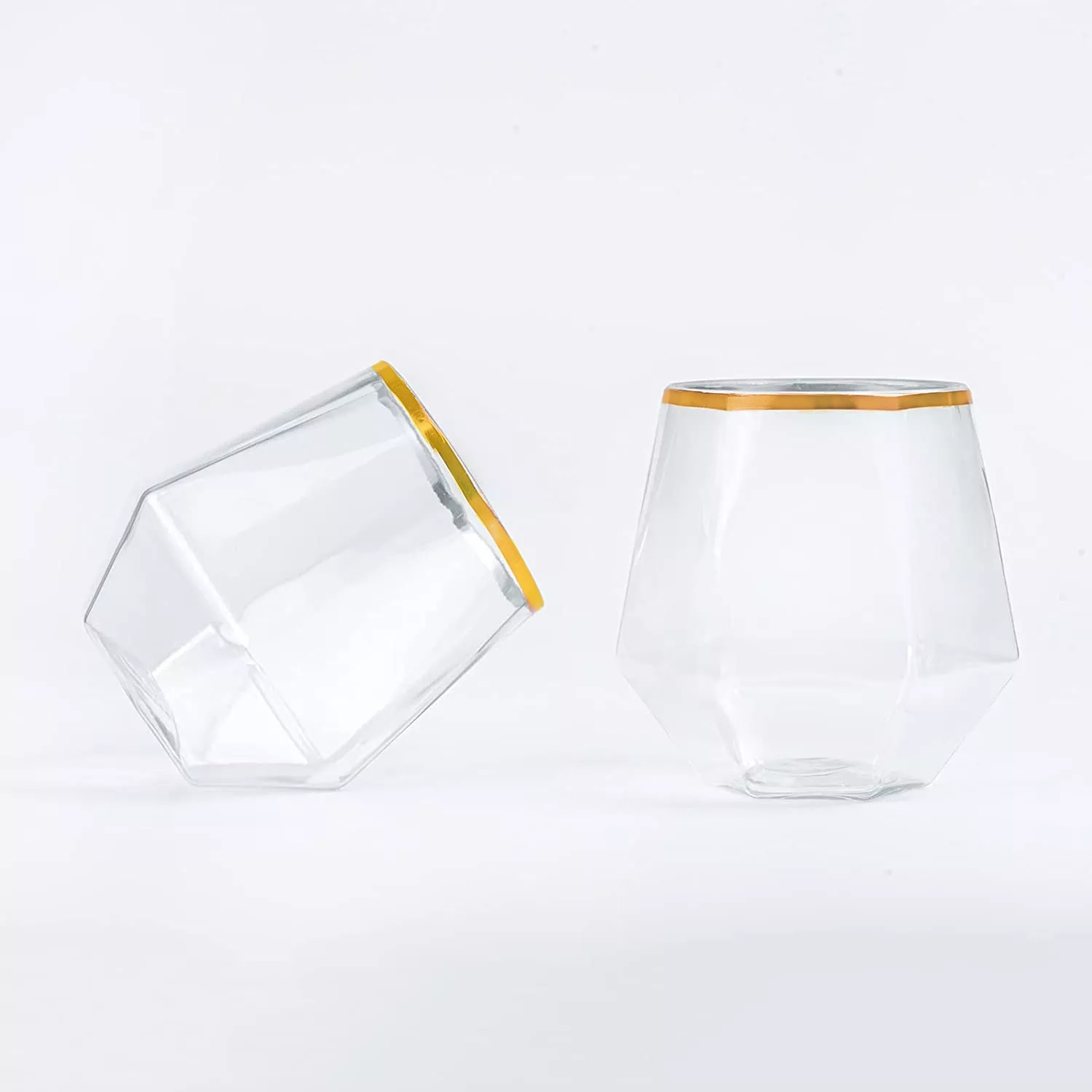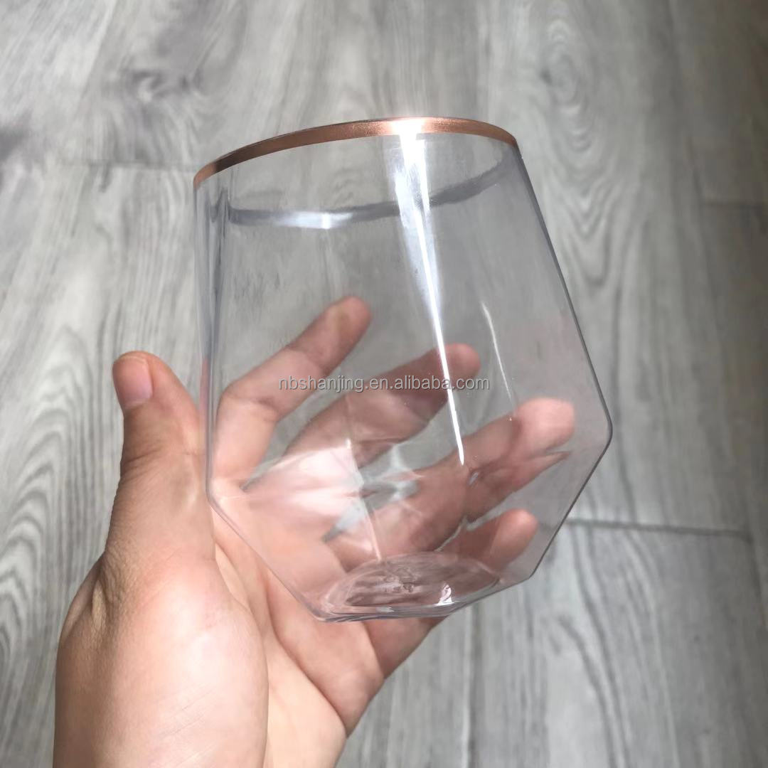 12 oz gold rose rim diamond shaped plastic stemless wine glass disposable champagne whiskey glass shatterproof recyclable$0.14 - $0.16 / piece