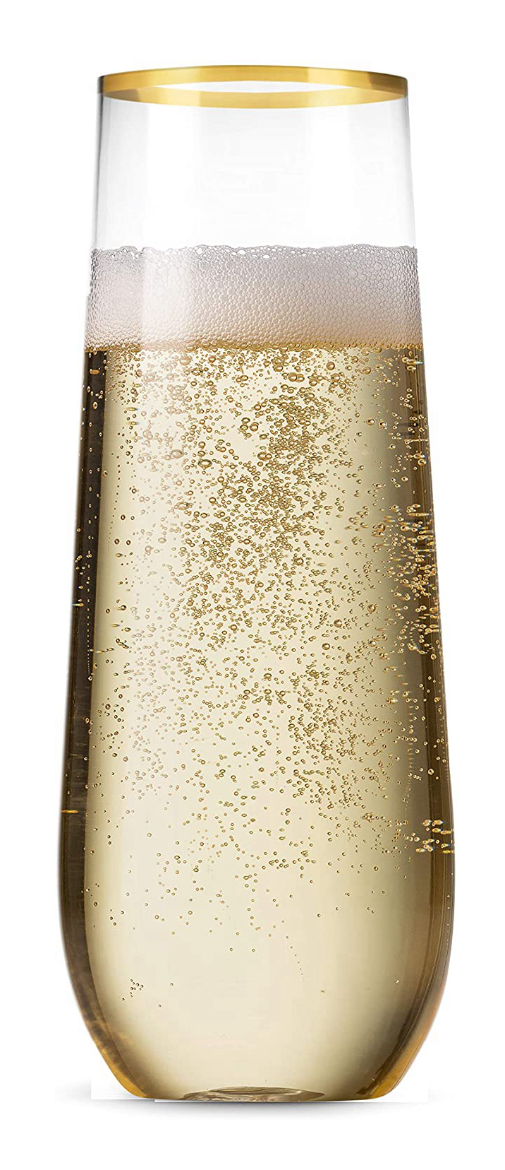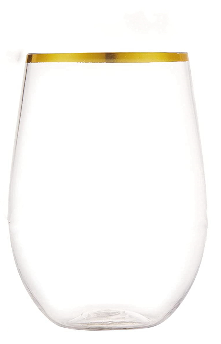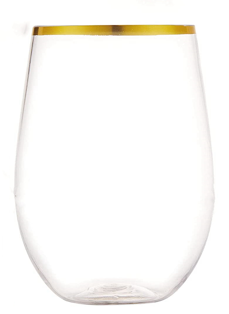 24-Pack 12oz PET Clear Stemless Champagne Flutes Plastic Stemless Wine Glasses with Rose Gold Rim/Gold Rim Shatterproof$0.18 - $0.20 / piece -
