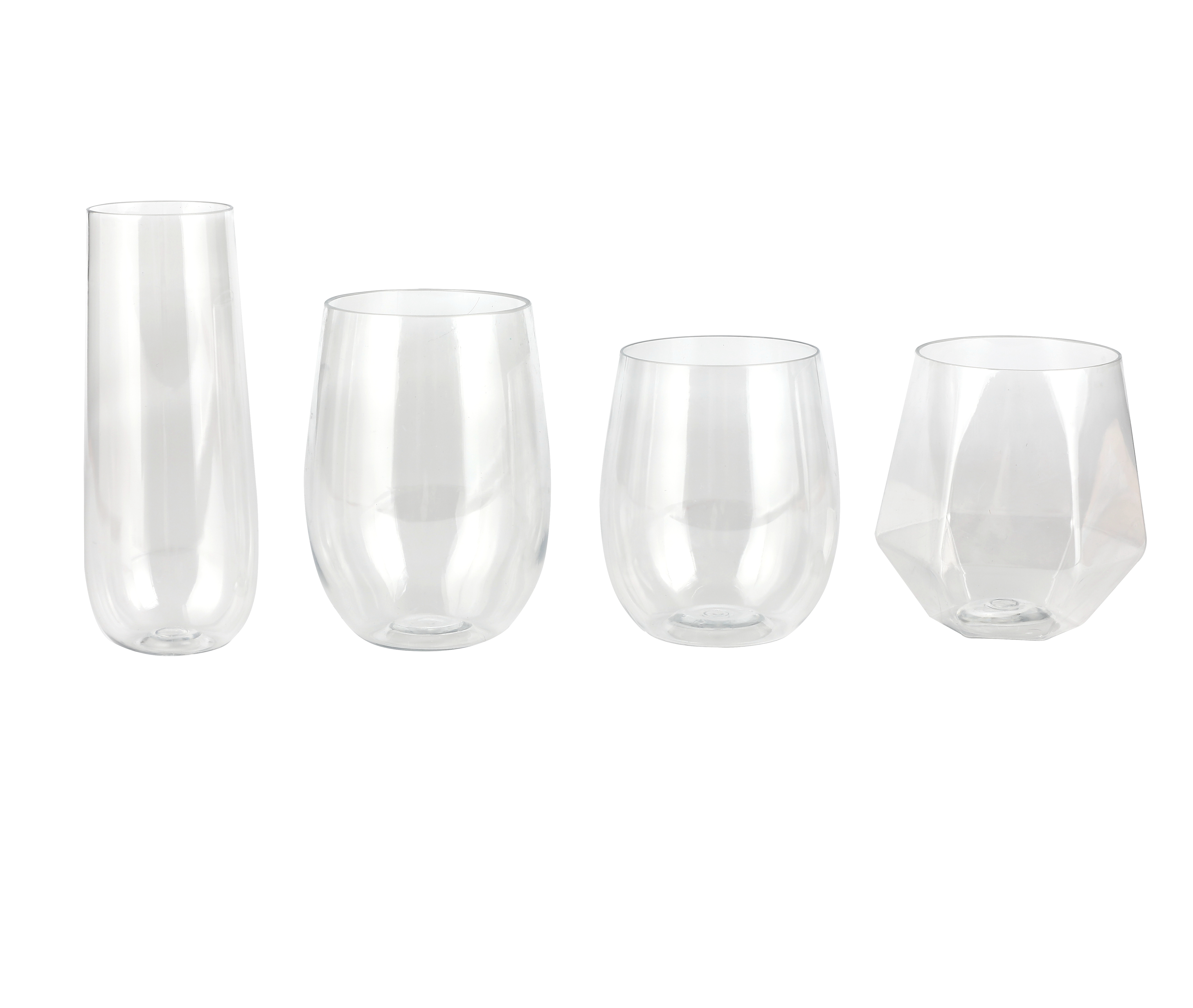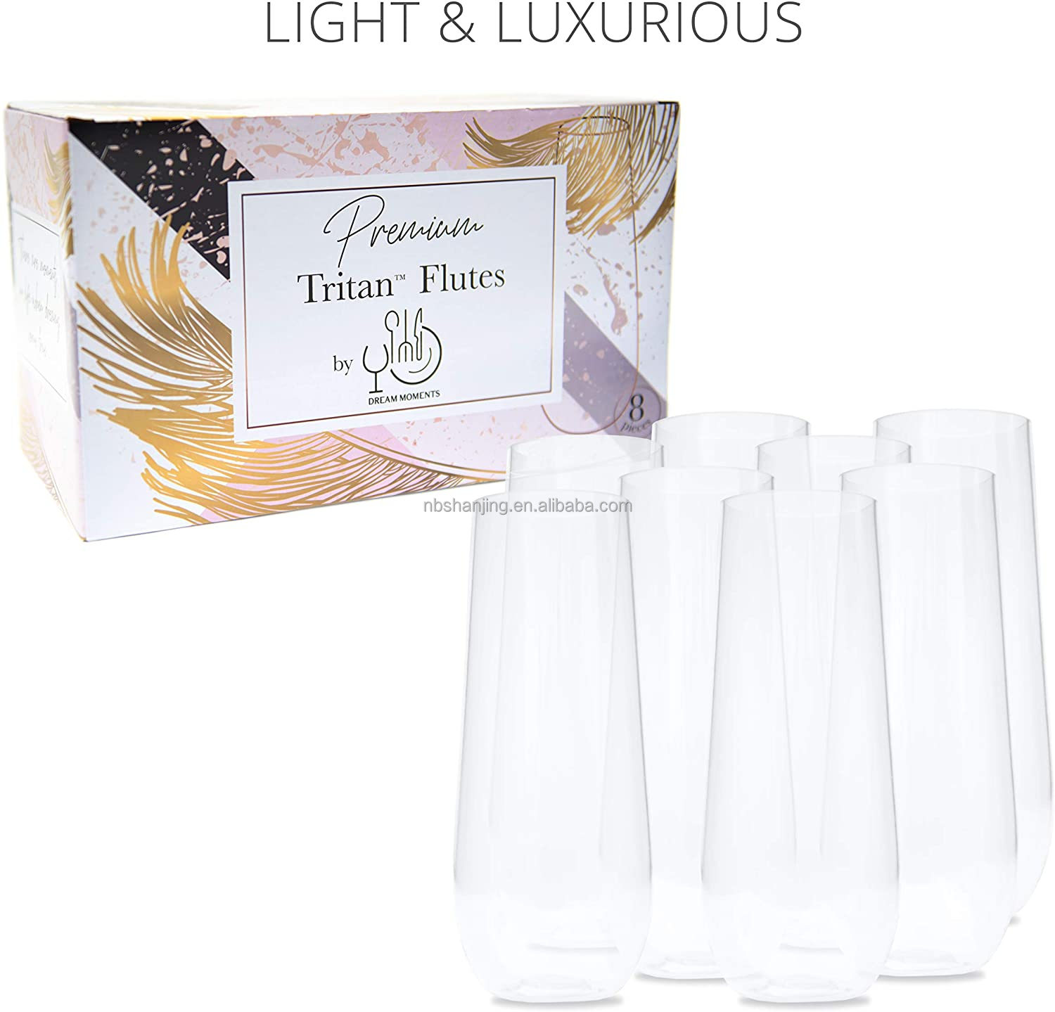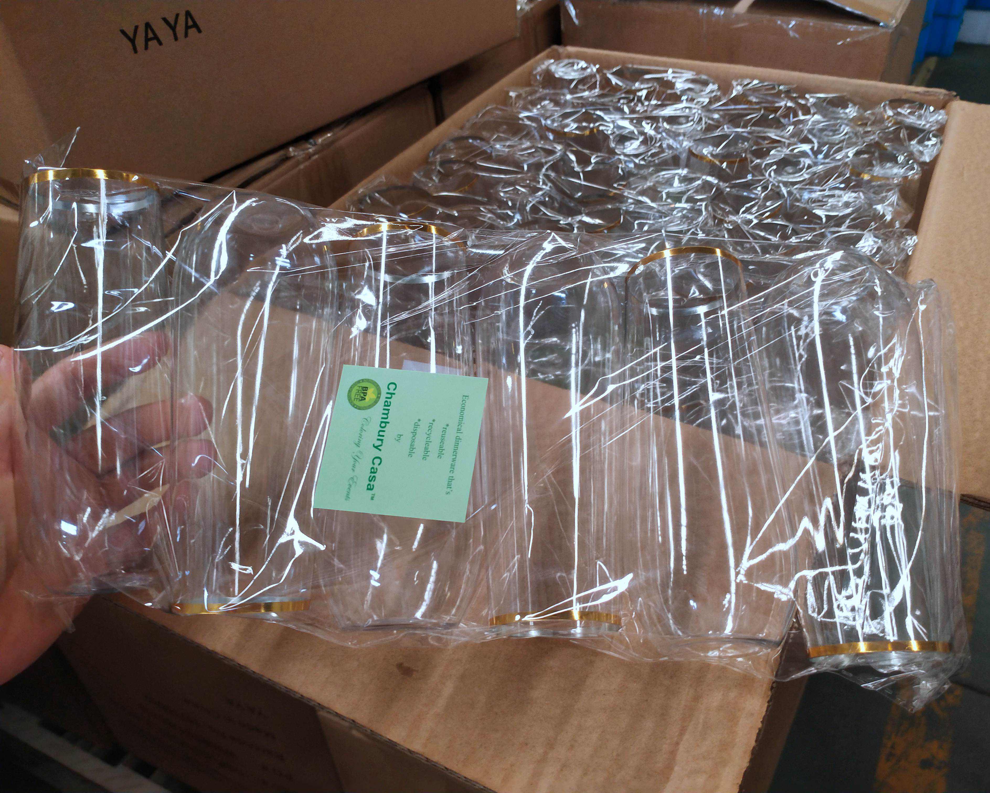 24-Pack 12oz PET Clear Stemless Champagne Flutes Plastic Stemless Wine Glasses with Rose Gold Rim/Gold Rim Shatterproof$0.18 - $0.20 / piece -