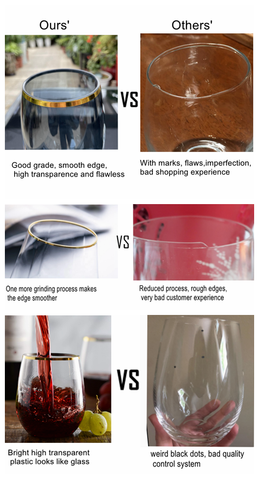 We have 2 different weights of this wine glass for you to choose from, one is 18g and the other is 35g, the most popular one is 18g because it is not easy to break even though it is light.