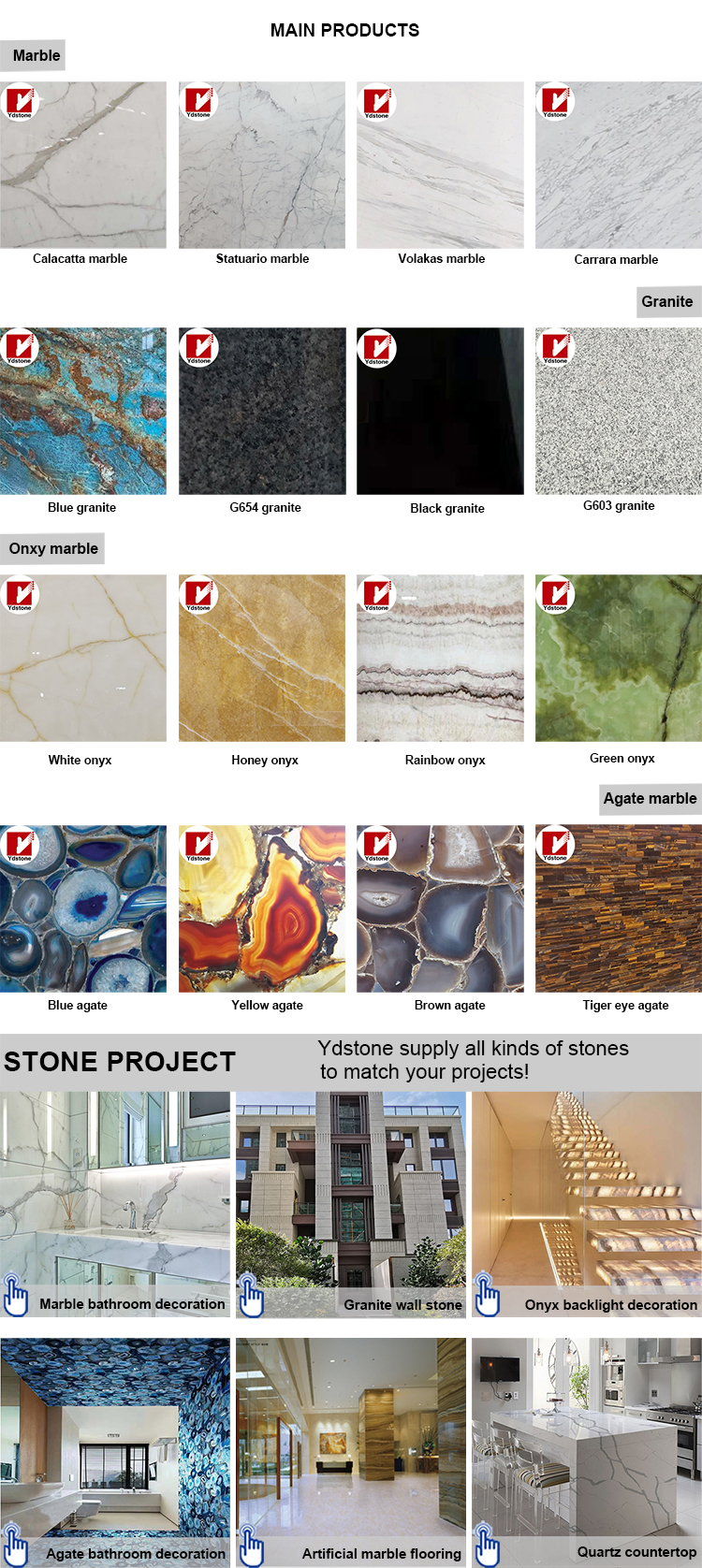 We have rich experience in processing, designing and trading wide range of stone products. Such as marble, granite, artificial marble, onyx marble, agate slab, etc. We have obvious advantages than other competitors, that is long-term experience, dilligent staffs, advanced facilities and good quality control system for stone production.