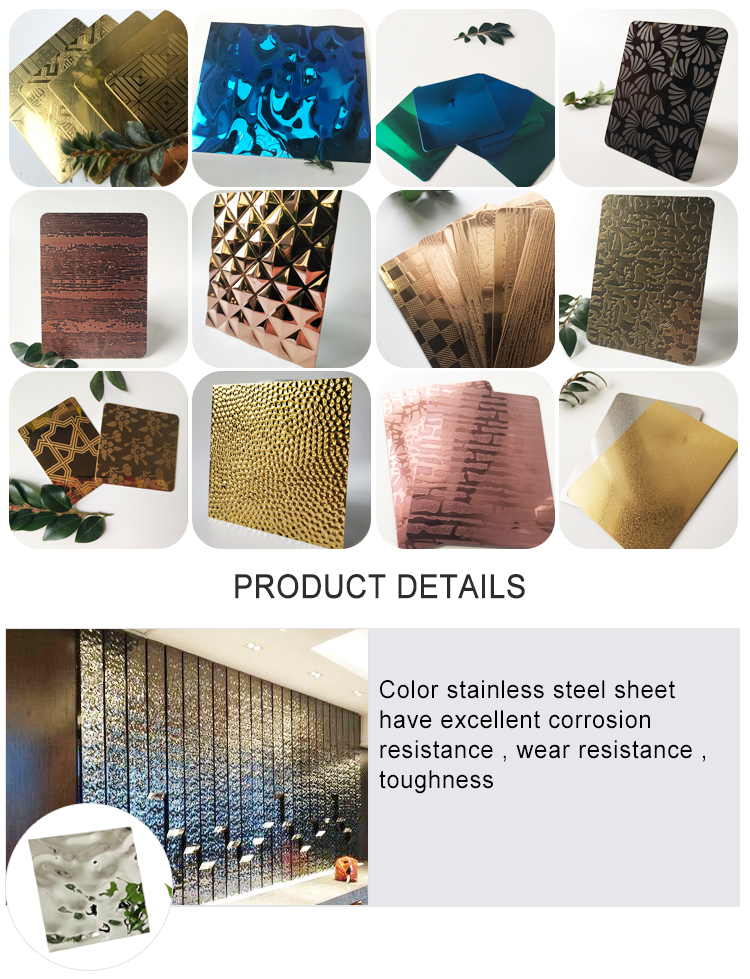 | product name: | Embossed titanium gold silver stainless steel plate | thickness: | 0.3mm--3.0mm, 0.3mm~3.0mm |