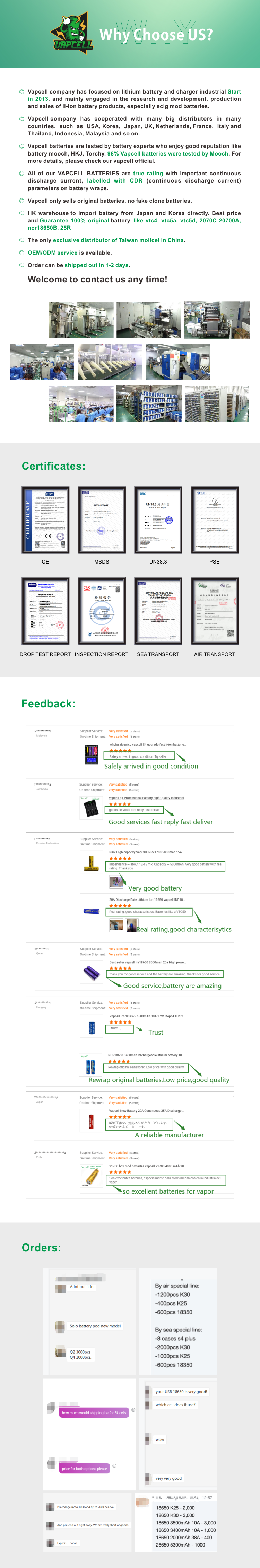 each2batteryespacked in aVapcell zipperBoxor plastic case,Standard 10kg batteryBatteryExport cartons.