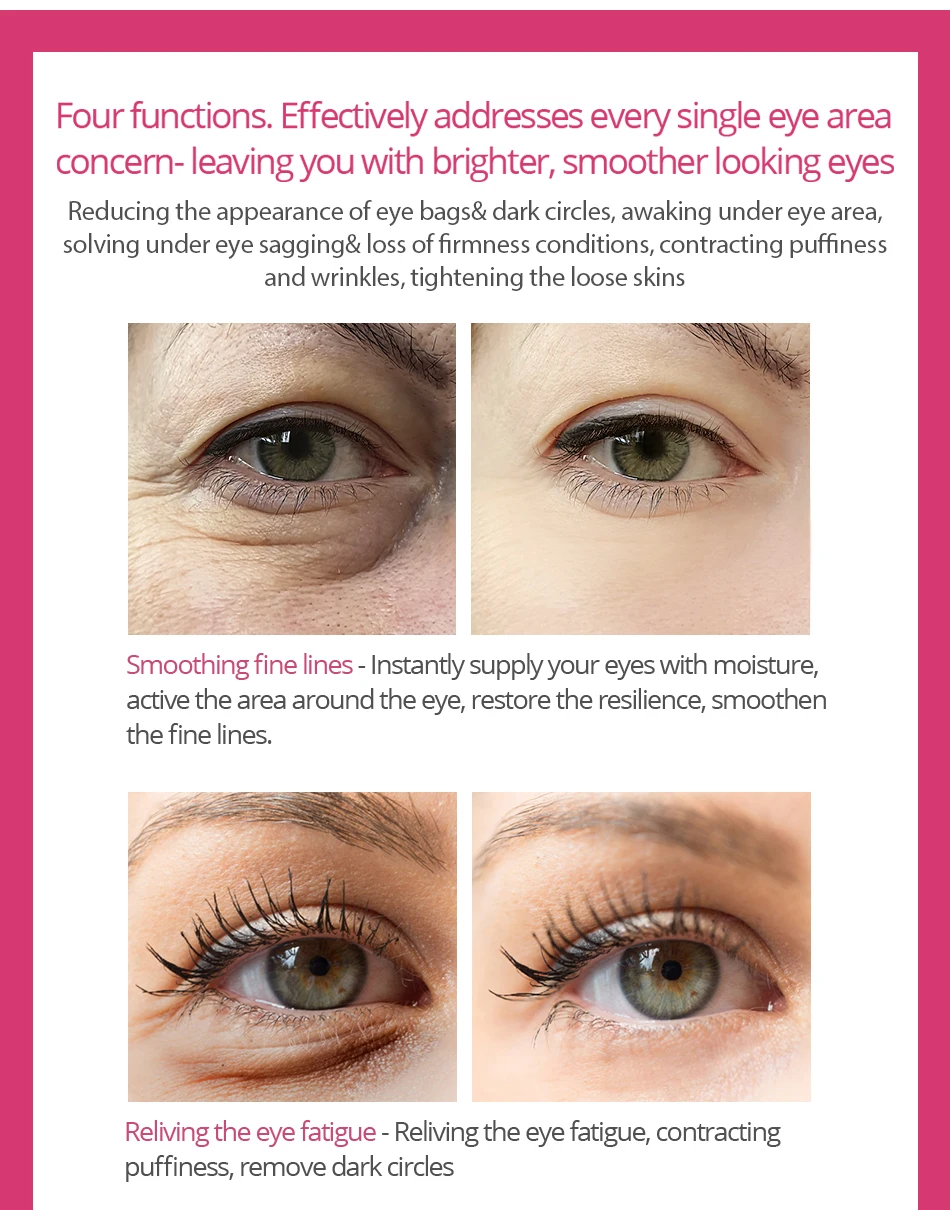 | Effect: | Anti Wrinkle Anti Aging Dark Circles Anti-Puffiness; | Suitable Age: | Unlimited; |