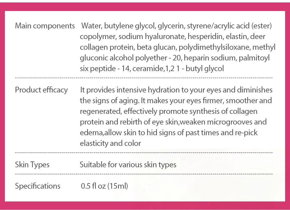 | Product name: | Collagen Eye Serum; | Gender: | Female; |