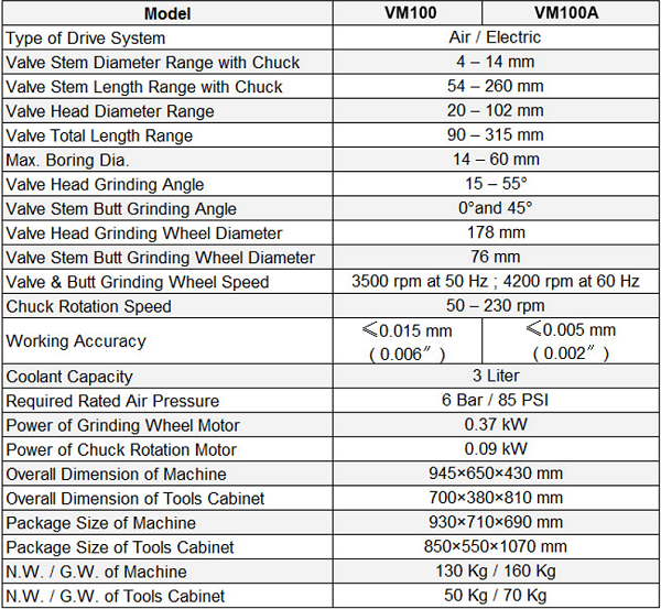 Valve grinder model: VM100 series can complete the following tasks within five minutes: Clamp the valve stem to maintain instant high-precision positioning; Finely grind the valve cone surface, the roundness can reach 0.005mm, and the smoothness can reach Ra0.32. The whole process is simple and perfect, very easy to use the machine, no special training is required, you can do that perfect job, depends on the 2×3 ball high precision pneumatic chuck. The VM100 series is the new standard in valve grinding speed and precision.