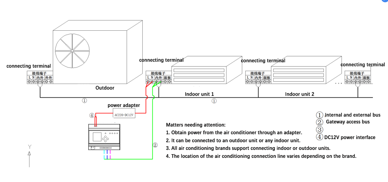 Gree connects the gateway H1/H2 to the internal and external terminals D1/D2 to distinguish between positive and negative. |