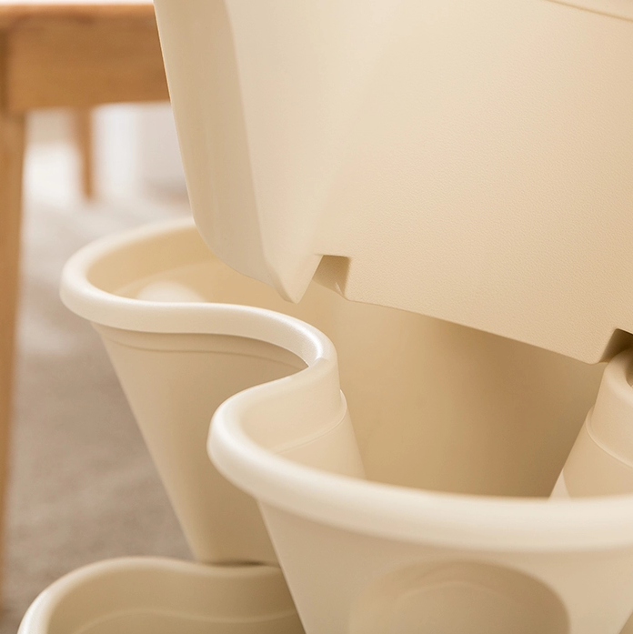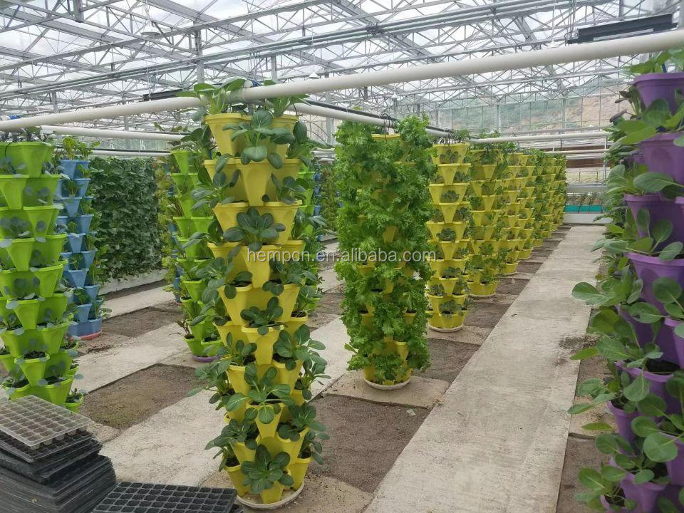 Vertical Garden Tower Pots Plastic Stacking Flower Pots For SaleConsists of 3 or more tiered planter sections, 1 base and 1 hanging chain to optimize your usable planting area. It can be used as a hanging or freestanding planter. The compact footprint of just 42cm high and 32cm in diameter is perfect for patios and balconies. You can create your own combination of fruits, flowers, vegetables or herbs. It holds 12 growing positions, allowing you to have all your favorite fresh ingredients or flowers right at your doorstep.