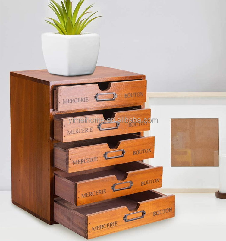 5 Drawer Desk Organizer - Vintage Wooden Storage Box with 5 Wide Storage Drawers - Antique Shelf Drawers - Home Desk Organizer and Accessories - Multilayer Wooden Desk Top Desk Drawer Organizer