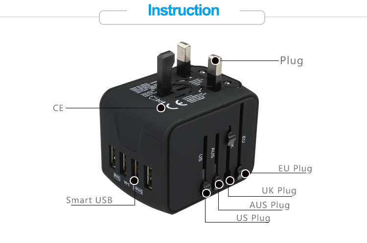 | 2. With 4 plug types (British, European, Australian, American) and universal socket, the American pin can be adjusted to the American pin. | |