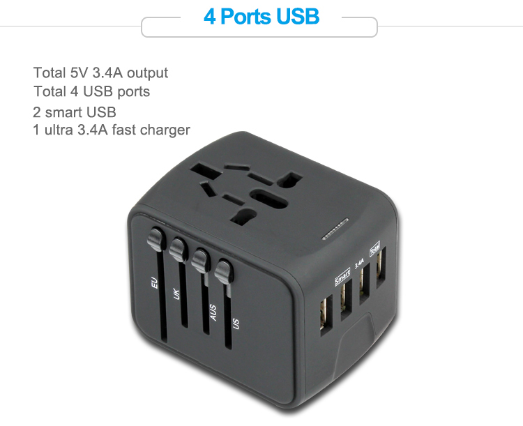 VIP electronic innovative enterprise anniversary gift 2018 4 usb universal travel plug adapter