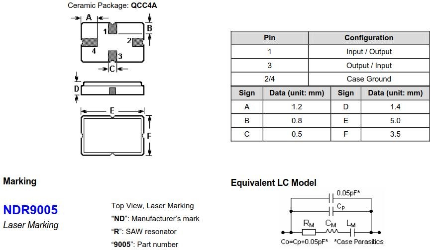 | Name: | SAW resonator | Frequency Range: | 915+-75KHz |