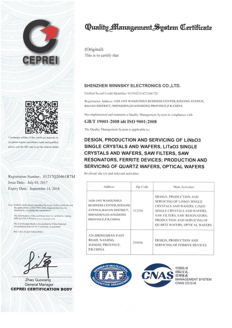 | Card: | WINNSKY SAW Resonator | sample: | accept |