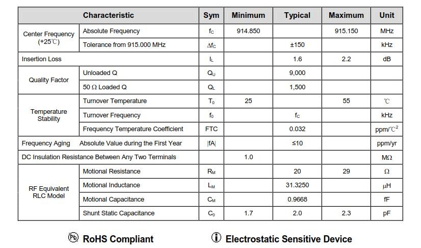 | frequency: | 915MHz | Frequency tolerance: | ±150KHz, ±75kHz |