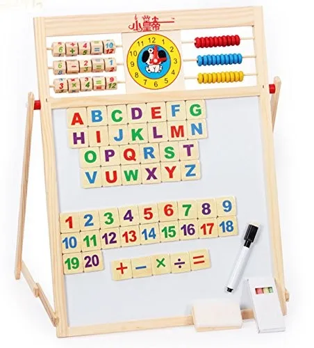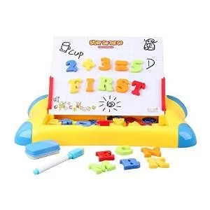 The Early Explorer is a portable tabletop art studio with a magnetic whiteboard on one side and a chalkboard on the other, plus magnetic shapes to keep little artists busy. Durable child-safe design. It can stimulate children's interest in learning and cultivate natural abilities such as painting.