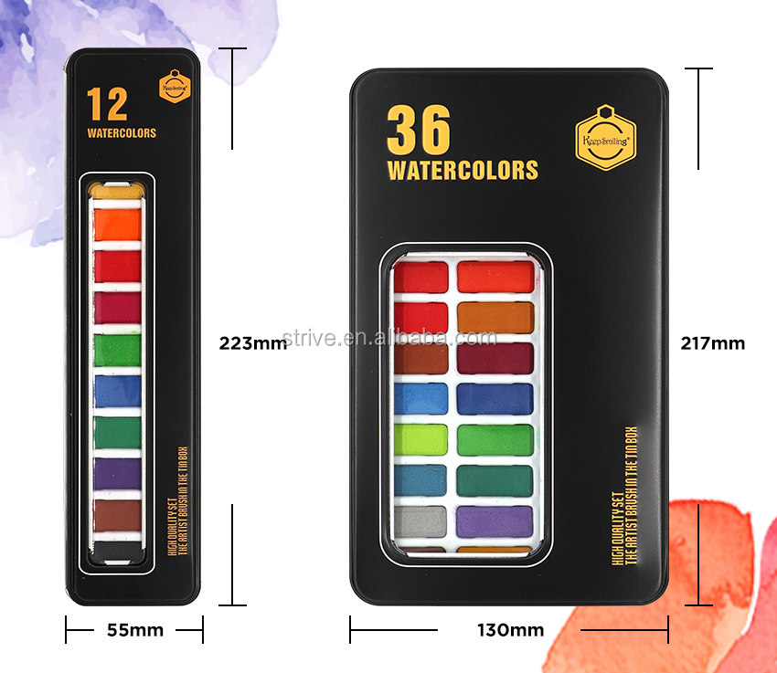 Watercolor Paint Set 12 24 36 Colors with Tin Box for Beginners