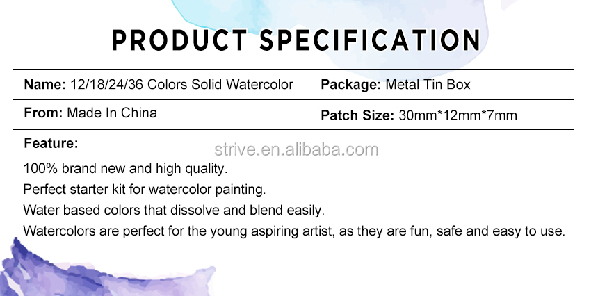 | product name: | Watercolor paint set | type: | Watercolor paints |