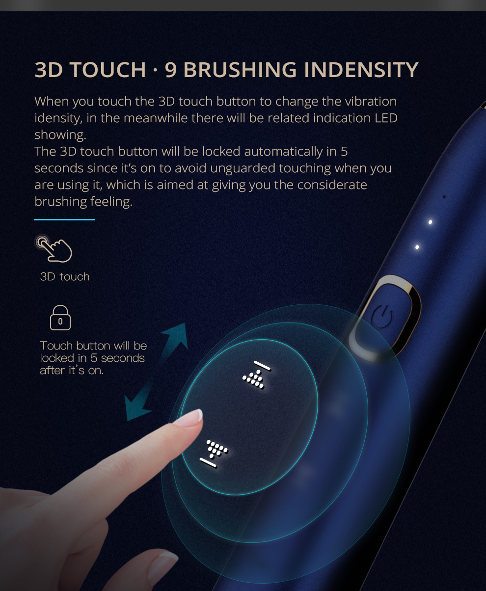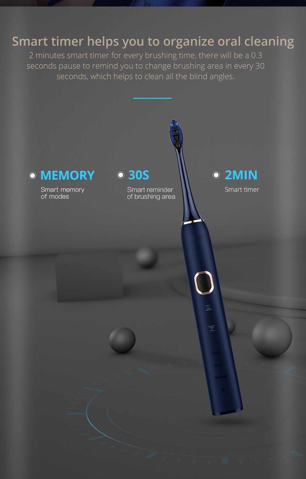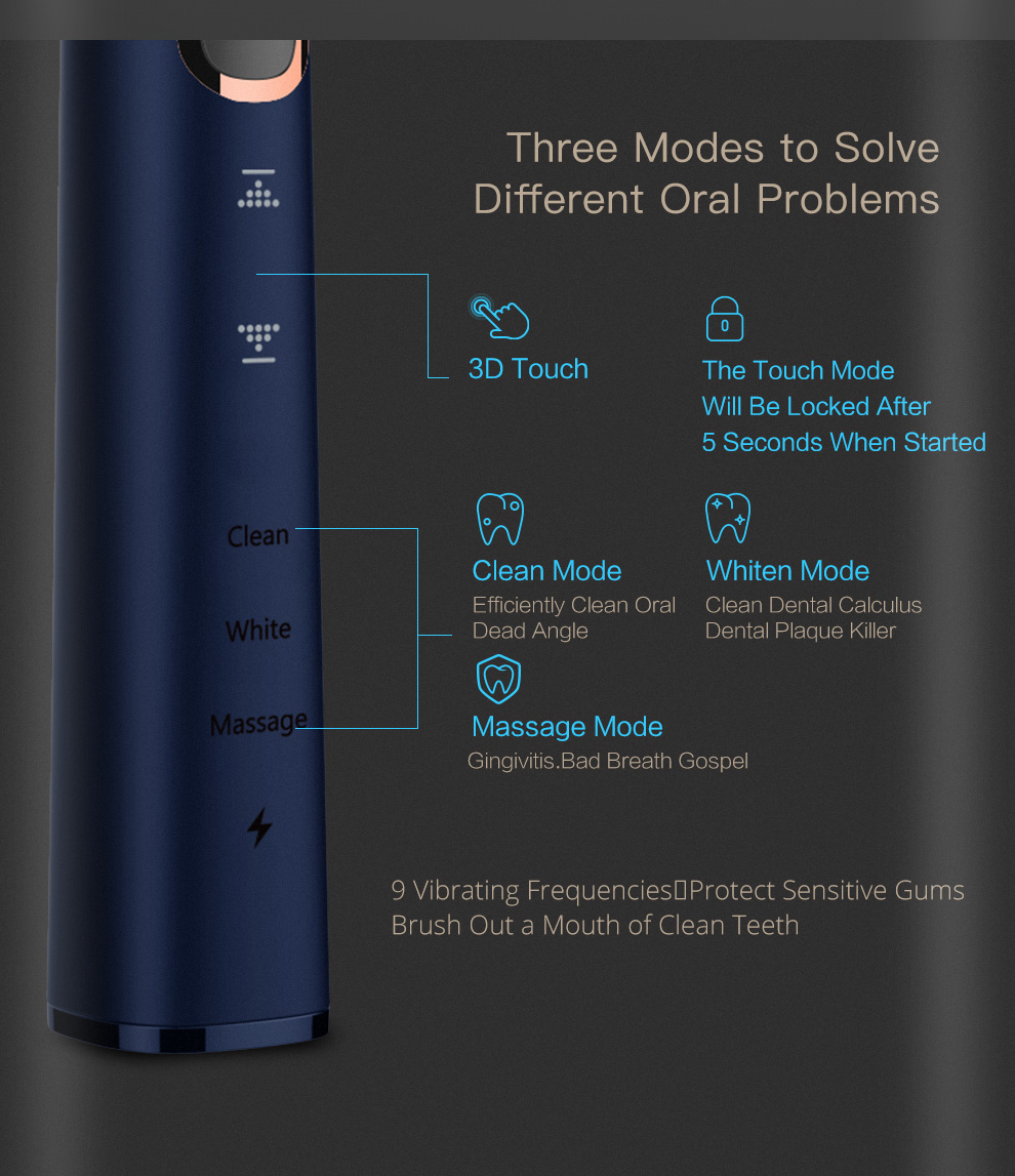 | Include | Toothbrush handle/toothbrush head×2/USB charging stand/instruction manual/warranty card/gift box |