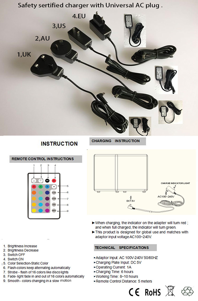 | Name | Waterproof IP68 Wireless Induction Charging Garden Home Decor LED Ball Light |