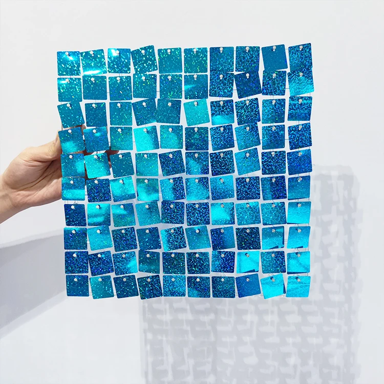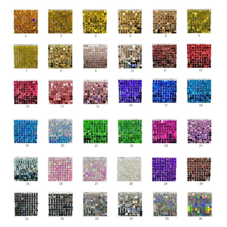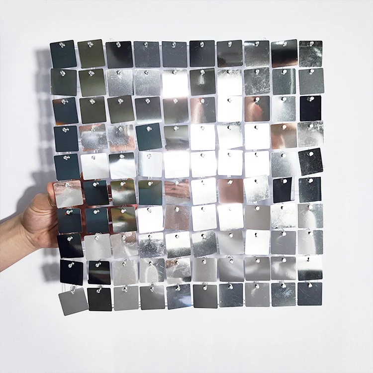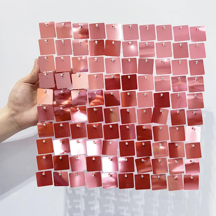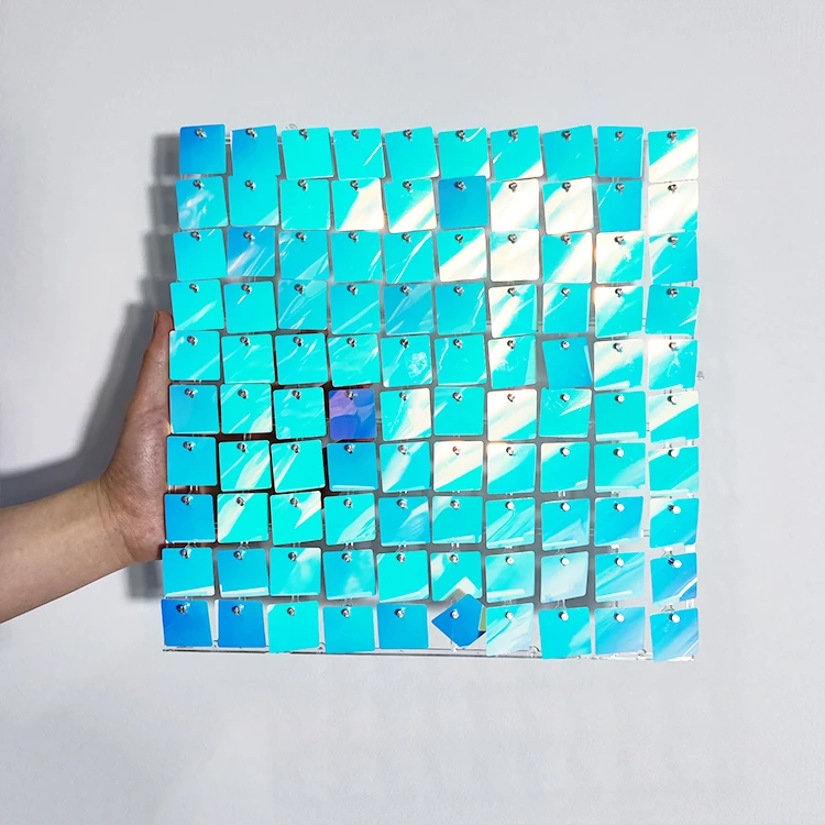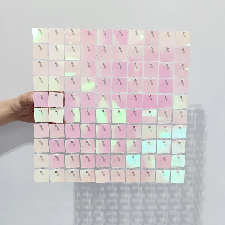 "'Inshine Display" is manufacturer specialized in display equipment more than 6 years, the background boards with 11.8''x11.8'' PET material of square clear panel, they are usually used as Wedding @ Party @ Birthday decorations. That glitter sheet is pet material, backboard is high clear acrylic panel. There are a lot of colors for your referance. Welcome to ask more information.