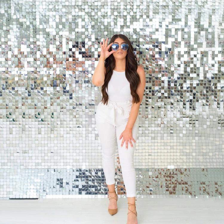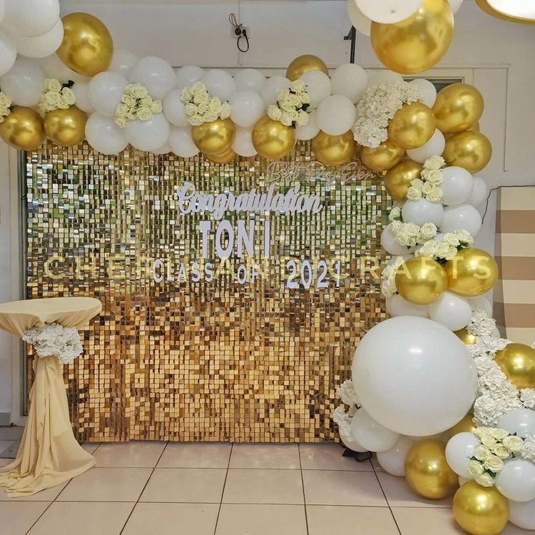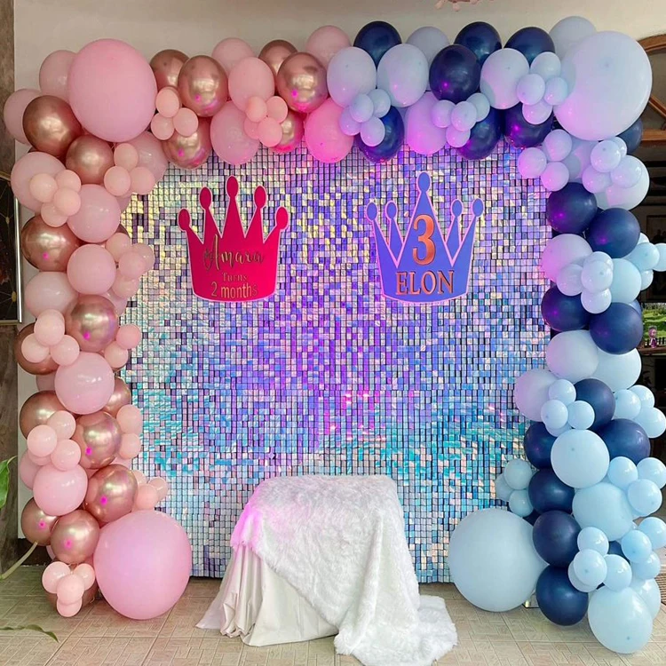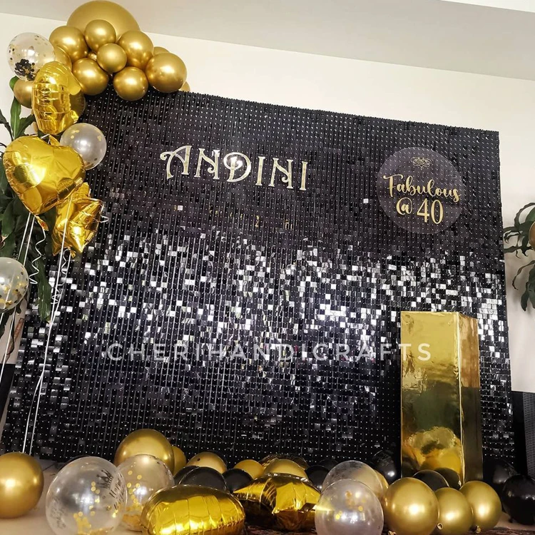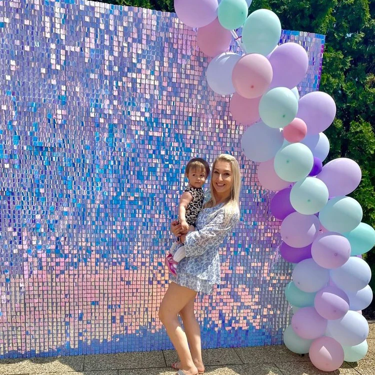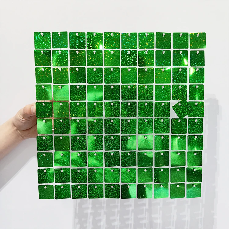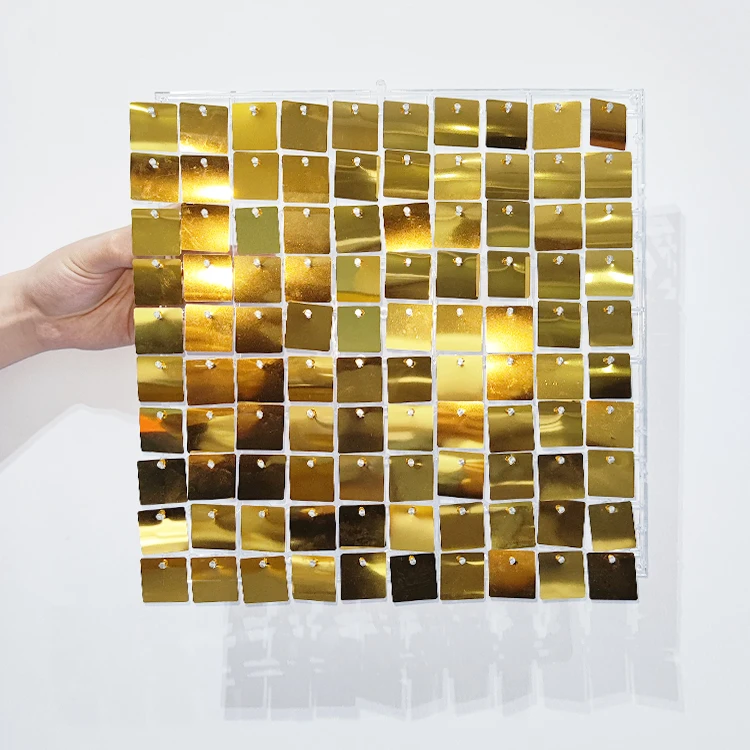 "'Inshine Display" is manufacturer specialized in display equipment more than 6 years, the background boards with 11.8''x11.8'' PET material of square clear panel, they are usually used as Wedding @ Party @ Birthday decorations. That glitter sheet is pet material, backboard is high clear acrylic panel. There are a lot of colors for your referance. Welcome to ask more information.