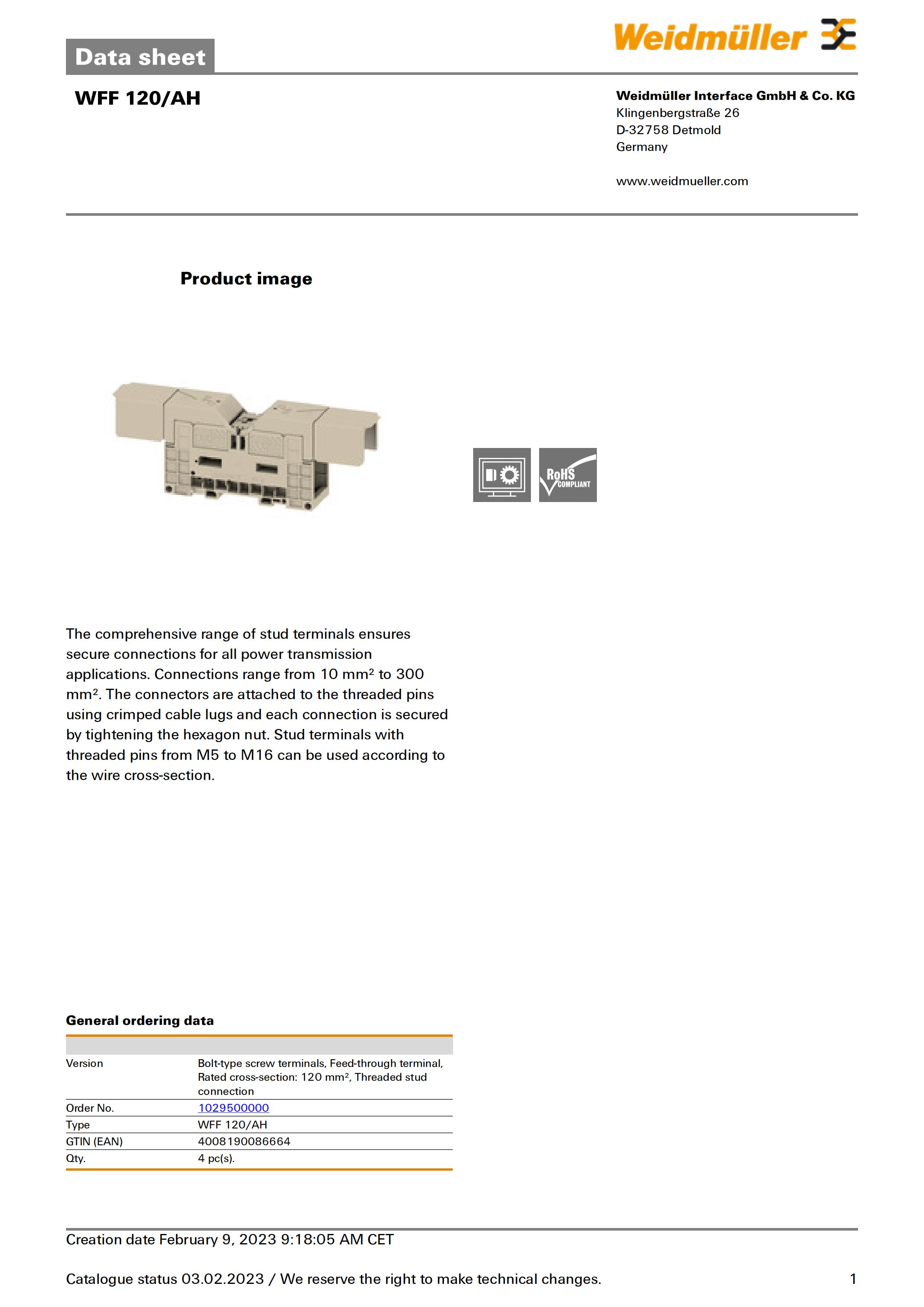 Weidmüller WFF 120/AH 1029500000 screw type screw terminal