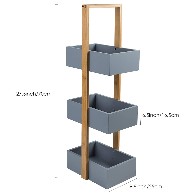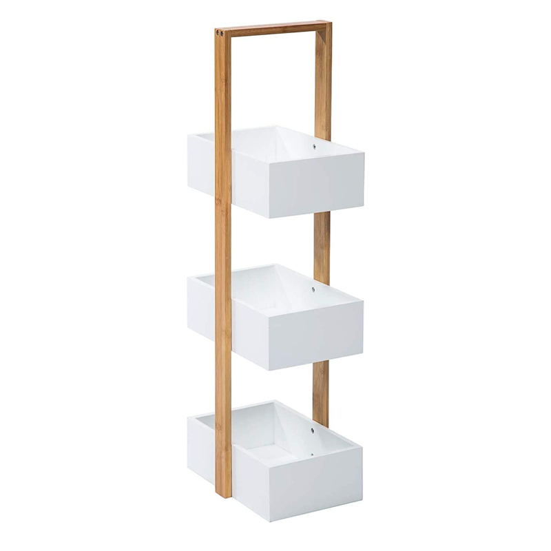 White 3 Tier Solid Bathroom Bedroom Storage Box Unit Bamboo Tub Box