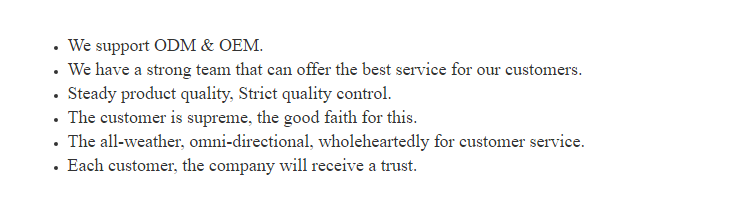 | Customized service | Customizable color/logo/design; support ODM, OEM orders |