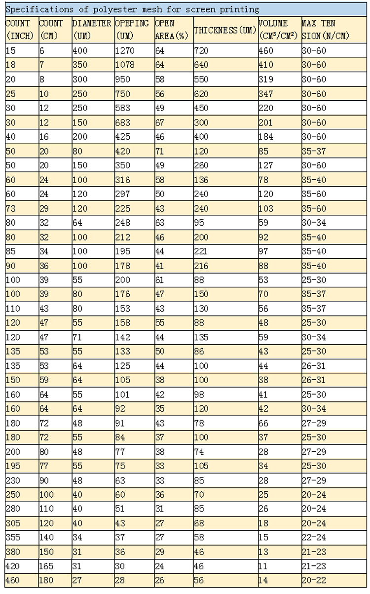 | print: | silk screen | Number of mesh: | 15 mesh-420 mesh per inch |