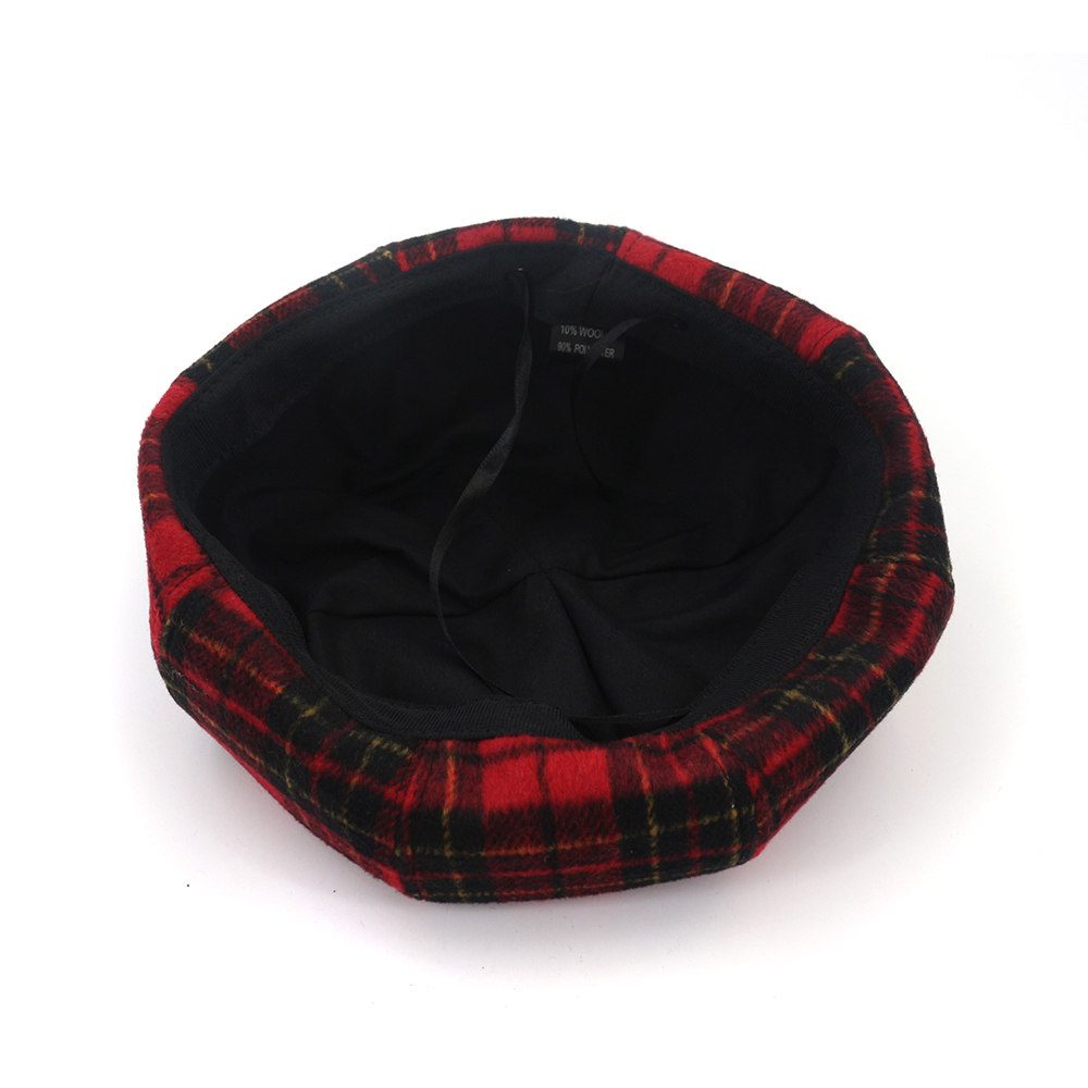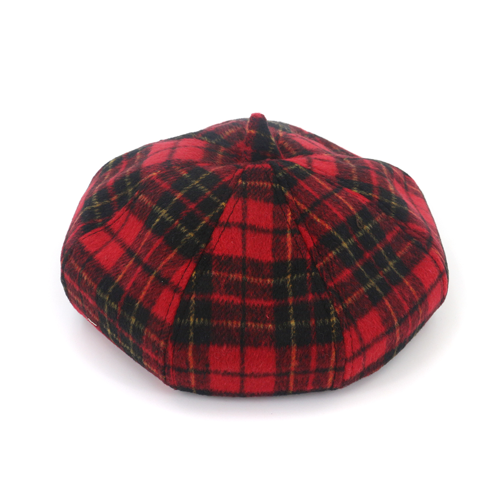 Classic Festival Grid England Red Plaid Lady Romantic Bowler Wool Beret