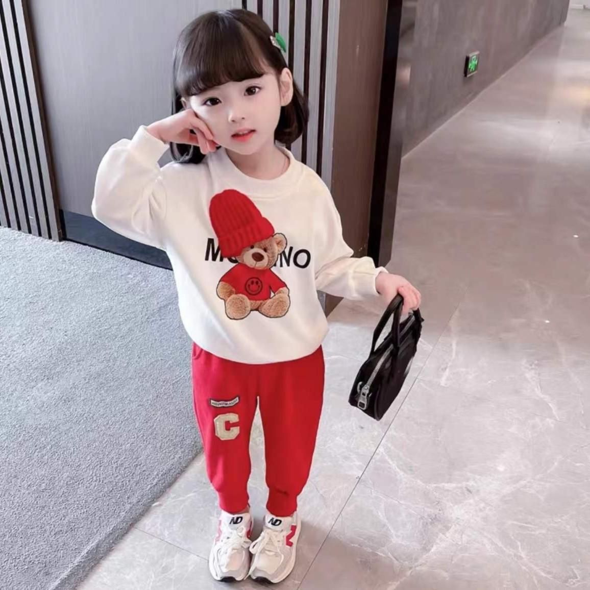 Wholesale boys and girls spring and autumn sweater suit boys new print sports cotton two-piece children's clothing