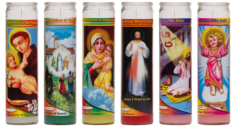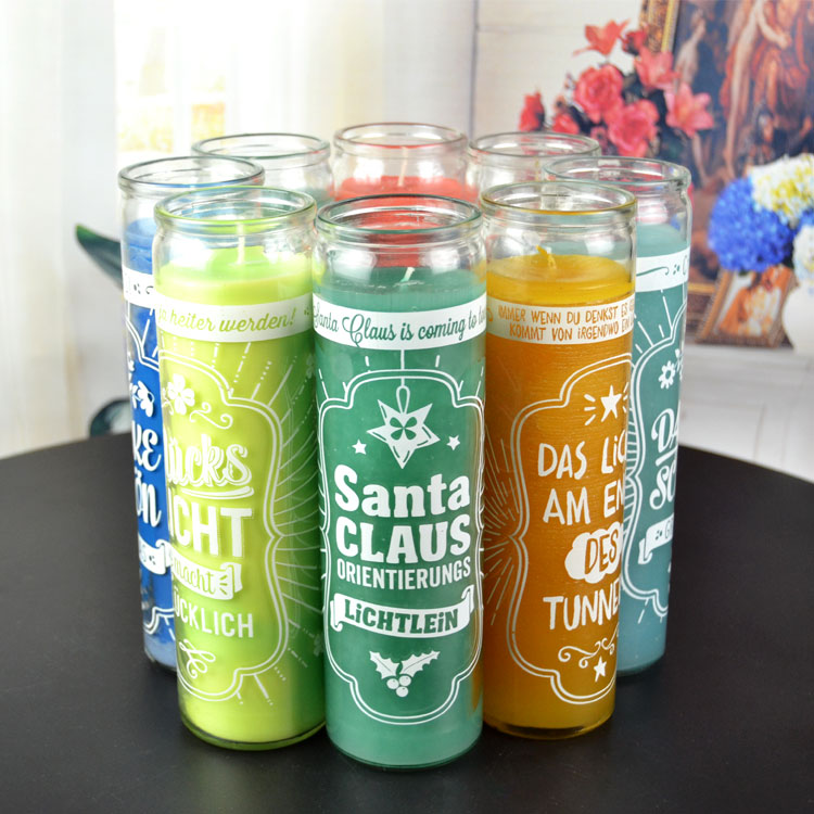 Multi-Colored Church Catholic Religious Used 8 Inches Devotional Saints Candles, Wholesale Cheap Spiritual Saint Long Tall Offertory Jesus Glass Candles