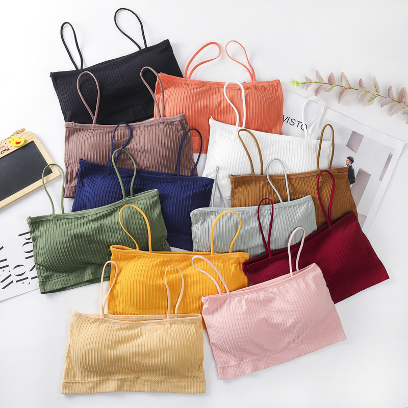 Wholesale Cheaper Comfortable Women's Camisole Ribbed Chest Double Padding Push Up Tank Top Seamless Sports Tube Top
