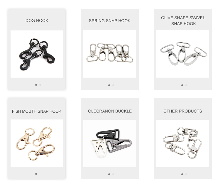 Wholesaler of all kinds of dog hooks, snap hooks, handbag and luggage accessories, webbing accessories, pet gift accessories. Products are exported to overseas markets such as Europe and Southeast Asia. , The business philosophy of surviving on quality, welcome friends from all business circles to come to consult and order.