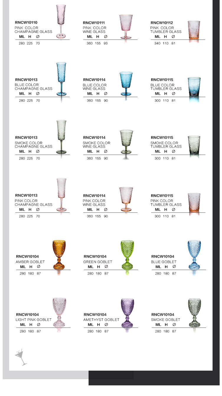 | occasion: | wedding | Packaging Details: | Wholesale Low Price Wedding Vintage Champagne Blue Amber Water Wine Glass Stained Glassware Pink Goblet Standard Export Carton |