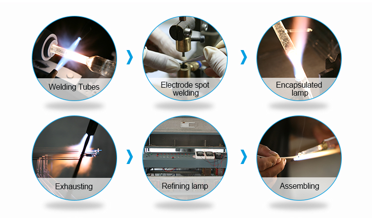 High pressure ultraviolet mercury lamp is the latest product developed by Huiyixin. The spectrum of the lamp is mainly distributed between 200nm-450nm, and its main peak is 365nm. It is mainly used in printing plate making, flexible packaging color printing, furniture industry, decorative materials, paper coating, surface coating of printing iron cans, aging of polymer compounds, photosensitive flame retardants such as semiconductors and ideal light sources for photosensitive character inks, printed circuit boards and signage.