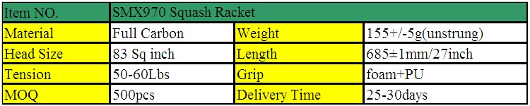 | Packaging Details: | opp bag/pc 30pcs/carton for SMX970 full graphite squash racket wholesale | place of origin; place of origin: | China |
