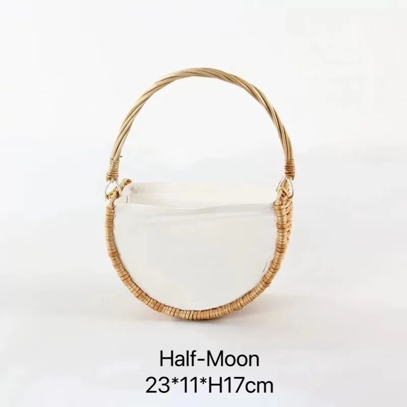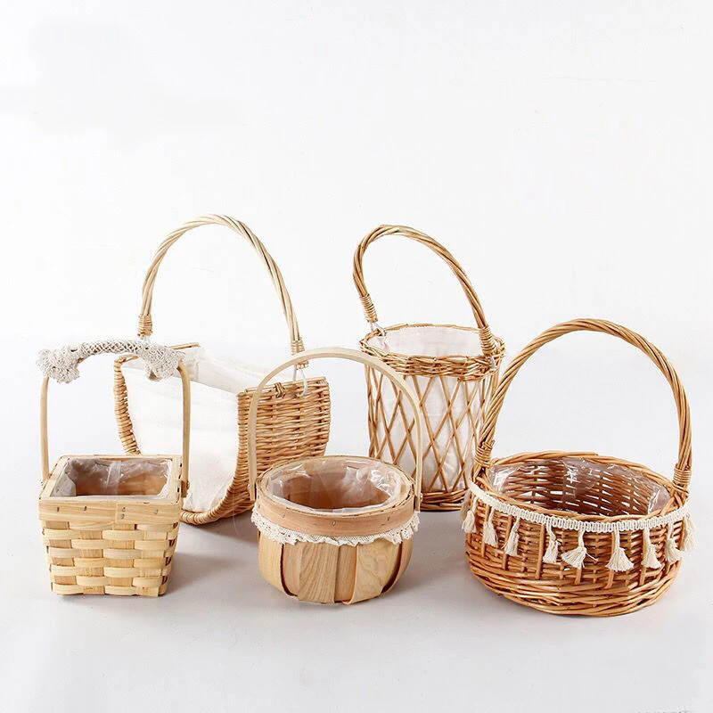 Wholesale Weaving Round Seagrass Handmade Flower Girl Basket With Handle Wicker Basket for Wedding