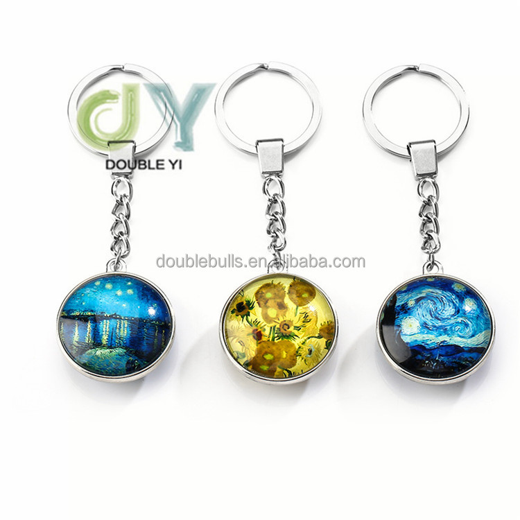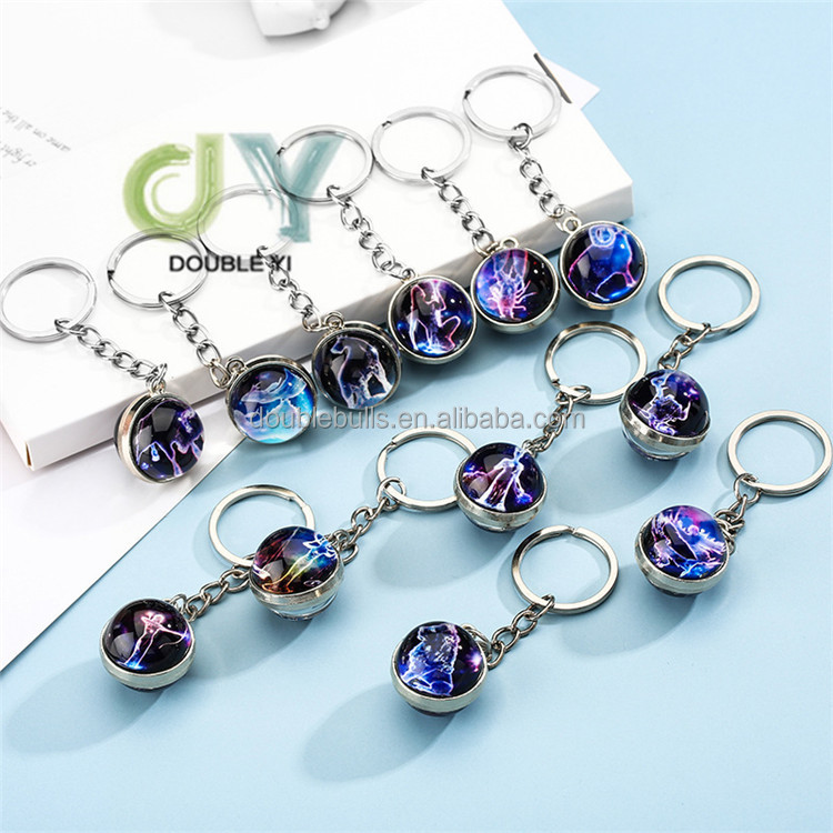 Wholesale fantasy keychain 12 zodiac gemstone keychain glass ball pendant keychain