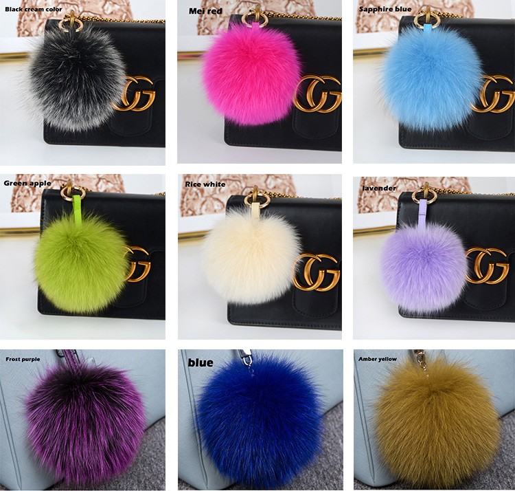 2017 New Fox Fur Light Bulb Handbag Accessories Keychain 100% Genuine Fur