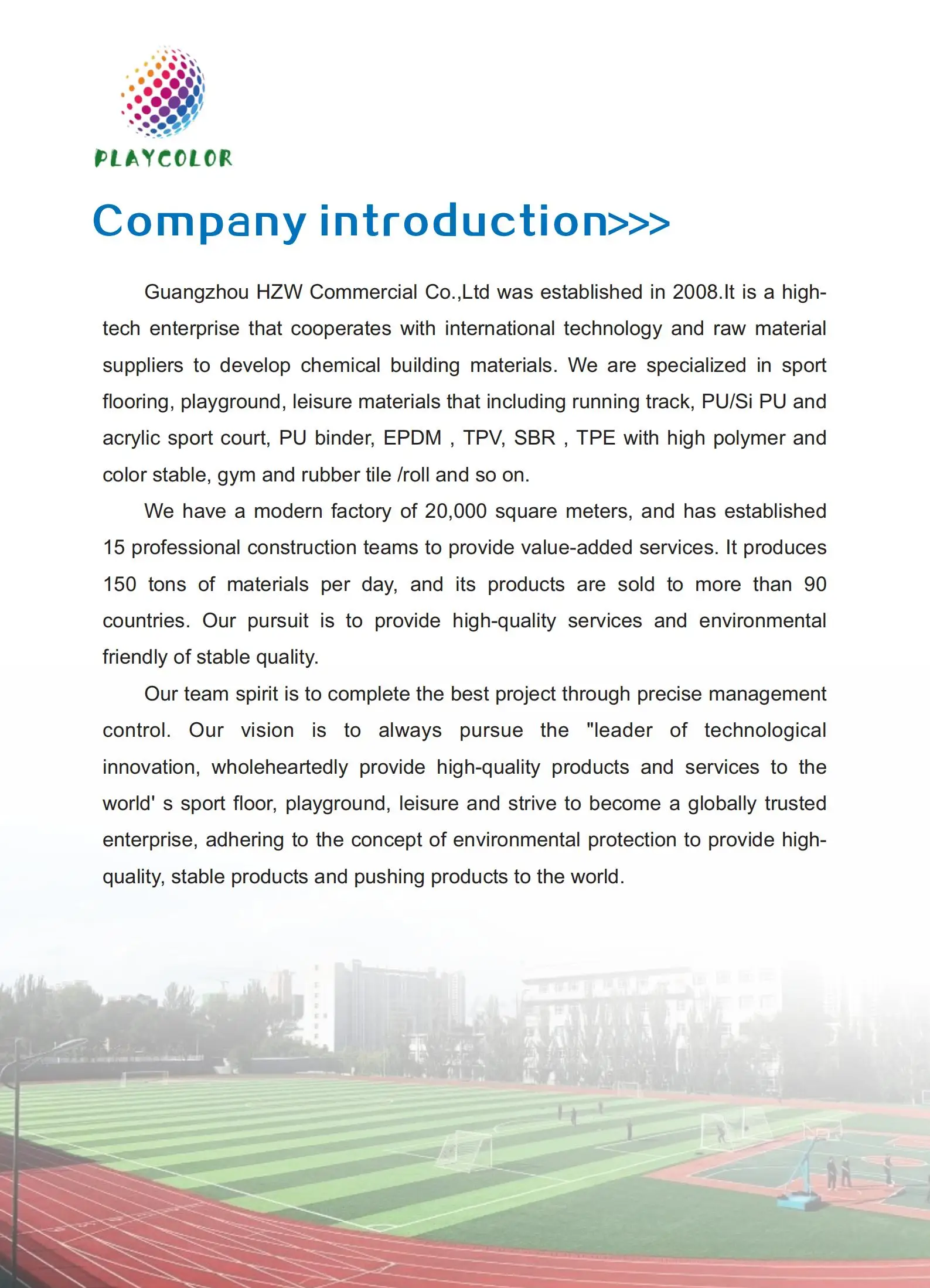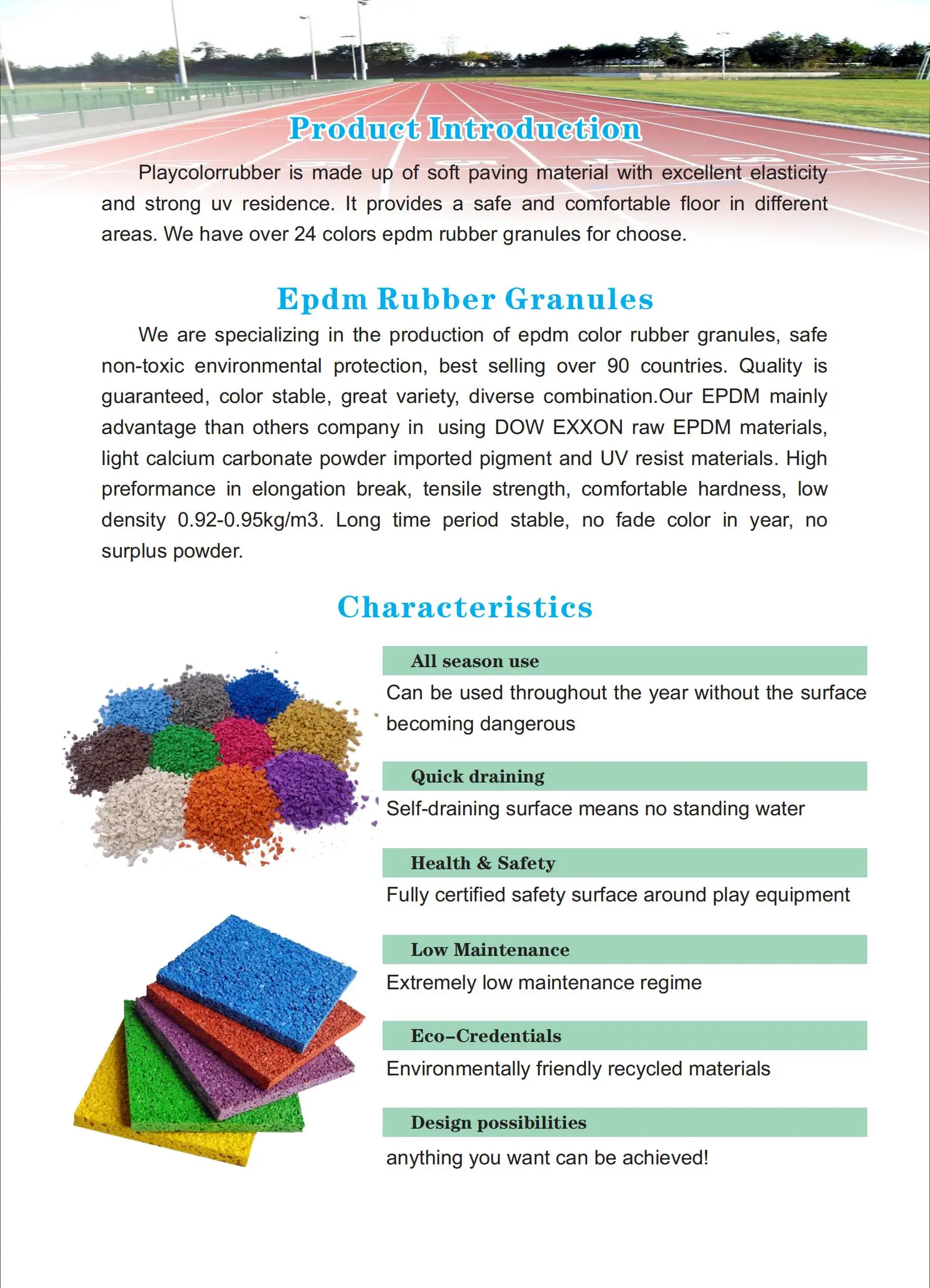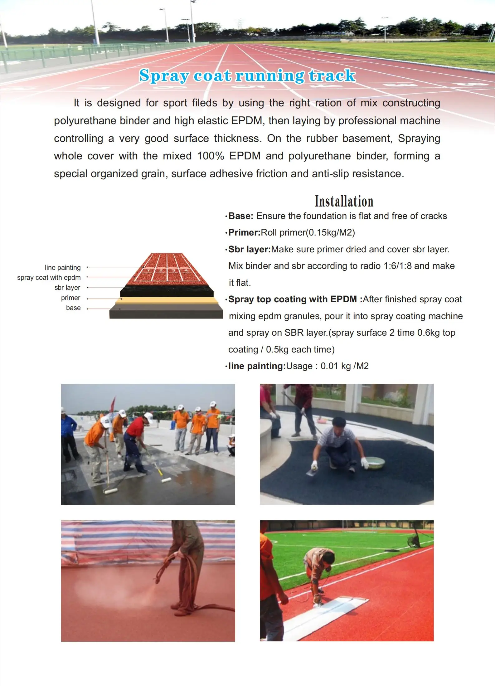 | Elongation at break: | > 700 %; | Application: | Playground,sport court,running/jogging track etc.; |