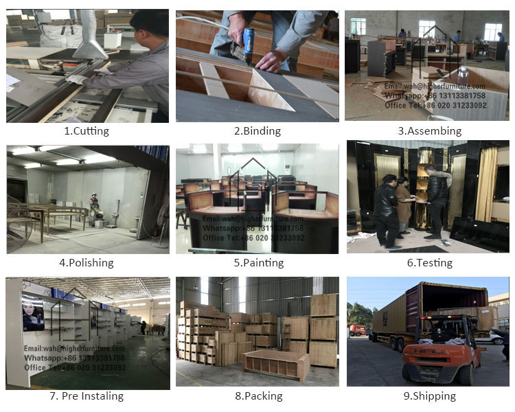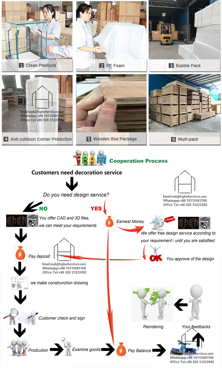Material: | Plywood, density board, solid wood, veneer, acrylic, stainless steel, Tempered glass, LED lighting, marble, etc. | ||