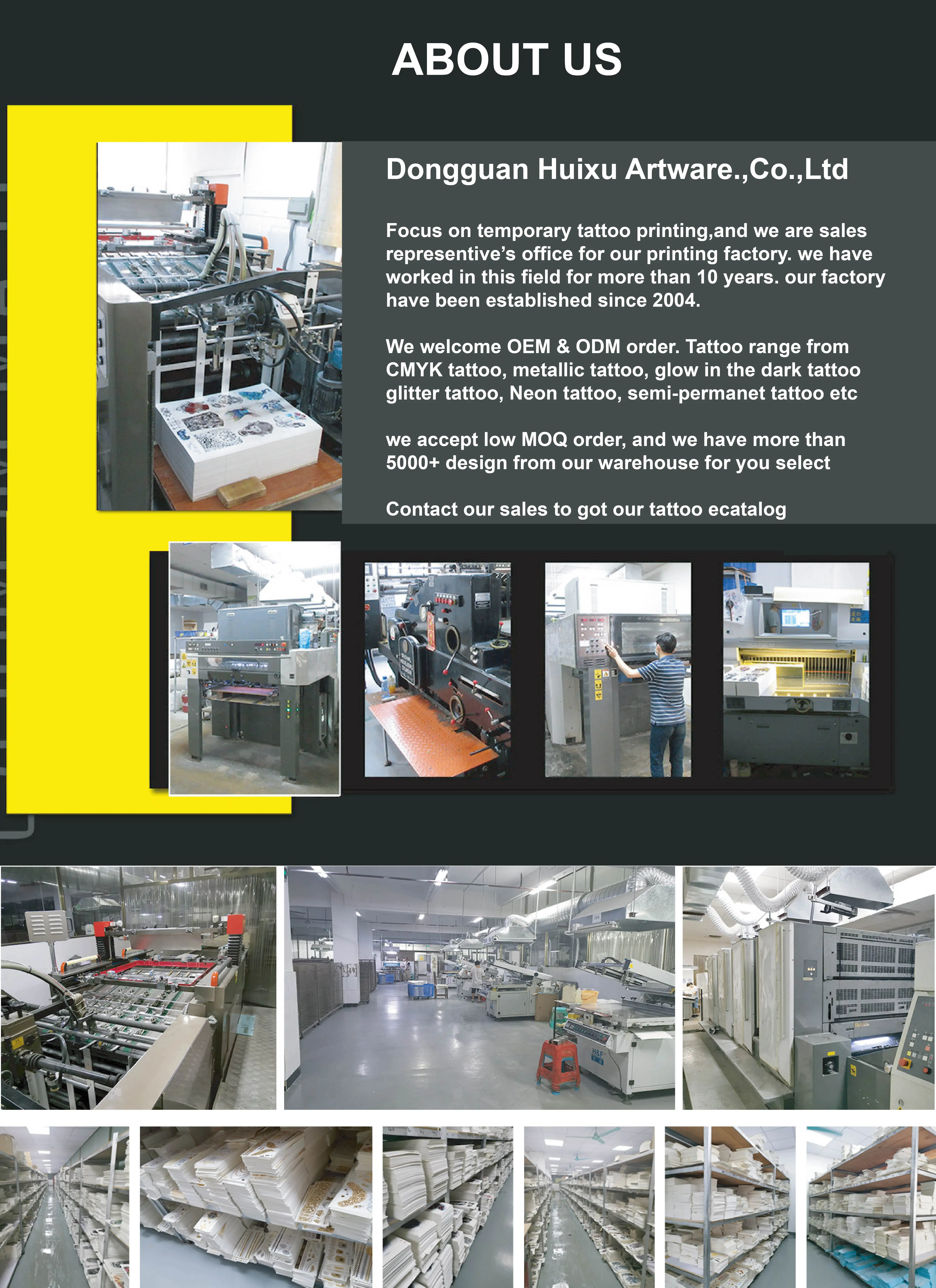 | Type: | Tattoo Sticker; | Certificate: | EN71-3, TRA, Heavy metal+6p ,cosmetic product safety report; |