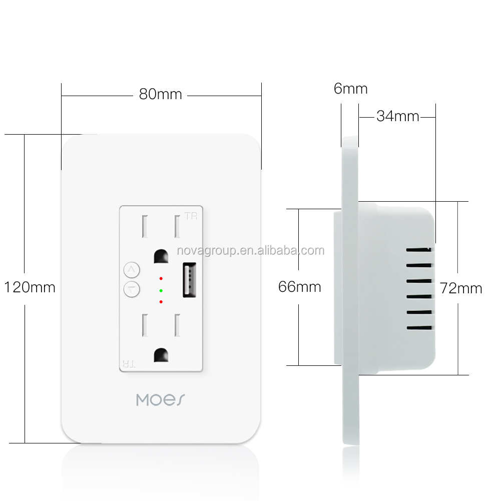 WiFi Smart Power Wall Outlet (USA) with USB, 2 Plug Outlets 15 Amp Sub-Control, Smart Life/Tuya APP Remote Control, Alexa, Acho