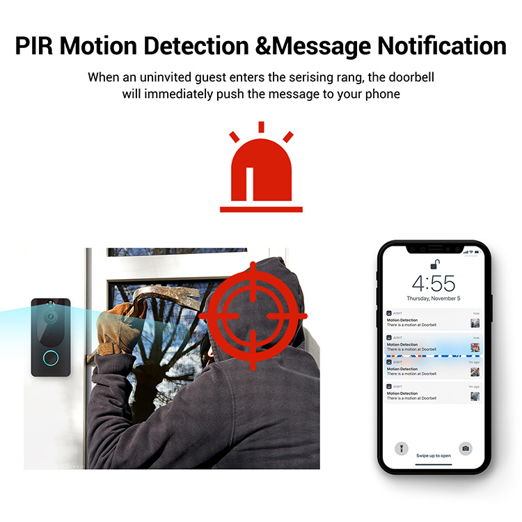 | When to record video | 1. Motion detection trigger 2. Press the doorbell button 3. APP preview |
