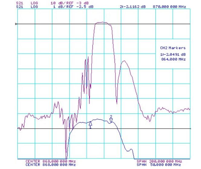 | Attenuation value: | customizable | Center/Cutoff Frequency: | 868.35MHz/4MHz |